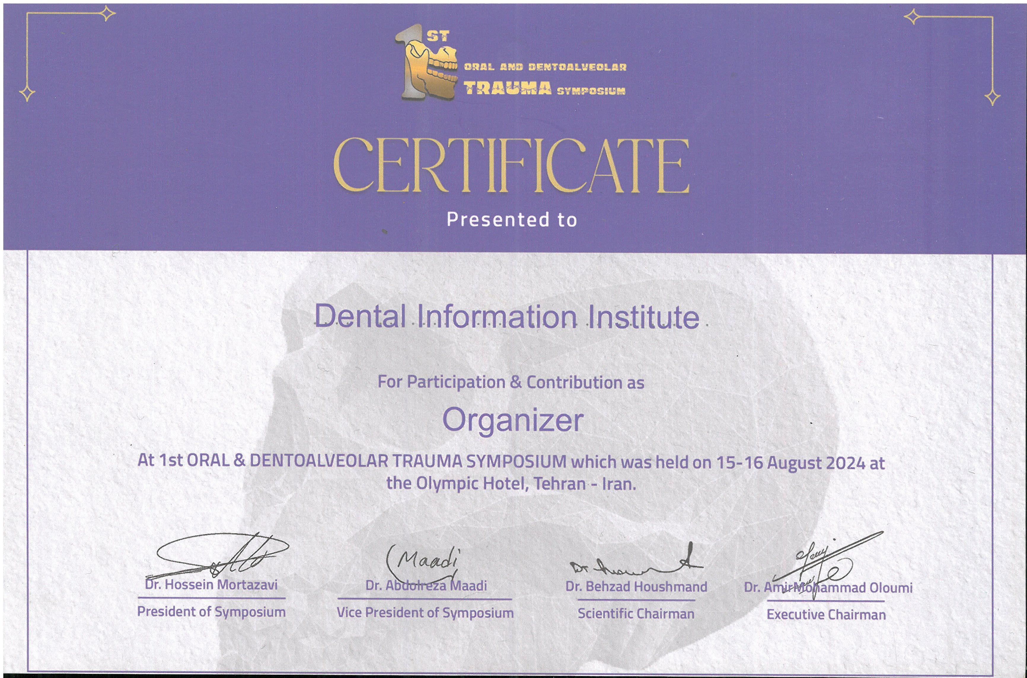 - Founder & Owner of the Dental Information Platform in Iran – www.dentii.info